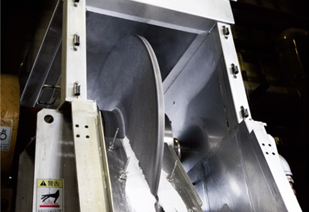 完全循環型のリサイクリング・システムに欠かせない乾燥機であるCDドライヤーを選定し、粉末状まで乾燥します。プレスではなく、熱処理を施すため、含水率を30%前後まで引き下げることが可能になりました。(*CDドライヤーは西村鐵工所の商品です。)